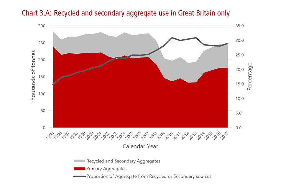 Chart illustrating recycled and secondary aggregate use in Great Britain only