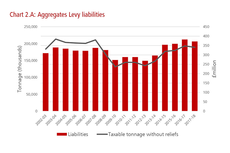 When introduced, the rate was set at £1.60 per tonne, which was increased to £1.95 per tonne in 2008 and £2.00 per tonne in 2009. The rate has remained frozen since 2009. Budget 2018 confirmed a further freeze in the rate of the levy, bringing the cumulative saving to quarries to 72p per tonne of aggregate in real terms since 2009, compared to uprating with inflation.