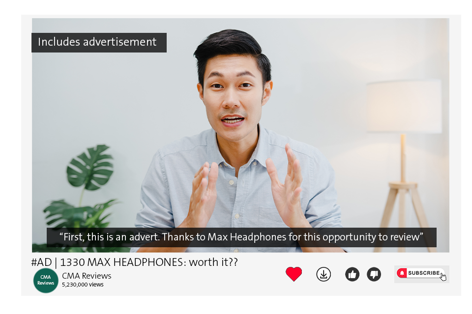 The image above is an example of a video endorsement which the CMA views would likely comply with the requirements of consumer protection law.