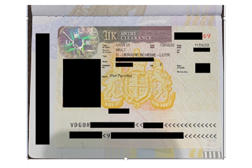 Example Ukraine Scheme Entry Clearance Vignette / Visa