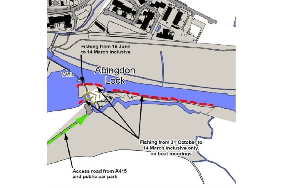 There are three fishing areas at Abingdon Lock. These areas are marked in red on the map.