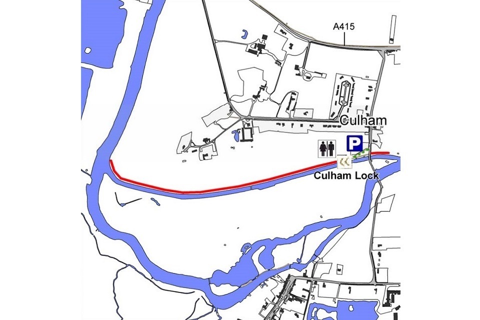From the A415 (Abingdon to Dorchester road), turn south onto Tollgate Road towards Culham village. Follow Tollgate Road south to the river.