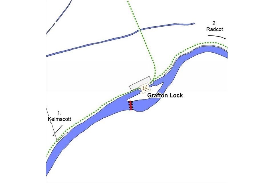 From Radcot, follow the towpath west and upstream (approximately 1.25 miles from the lock).