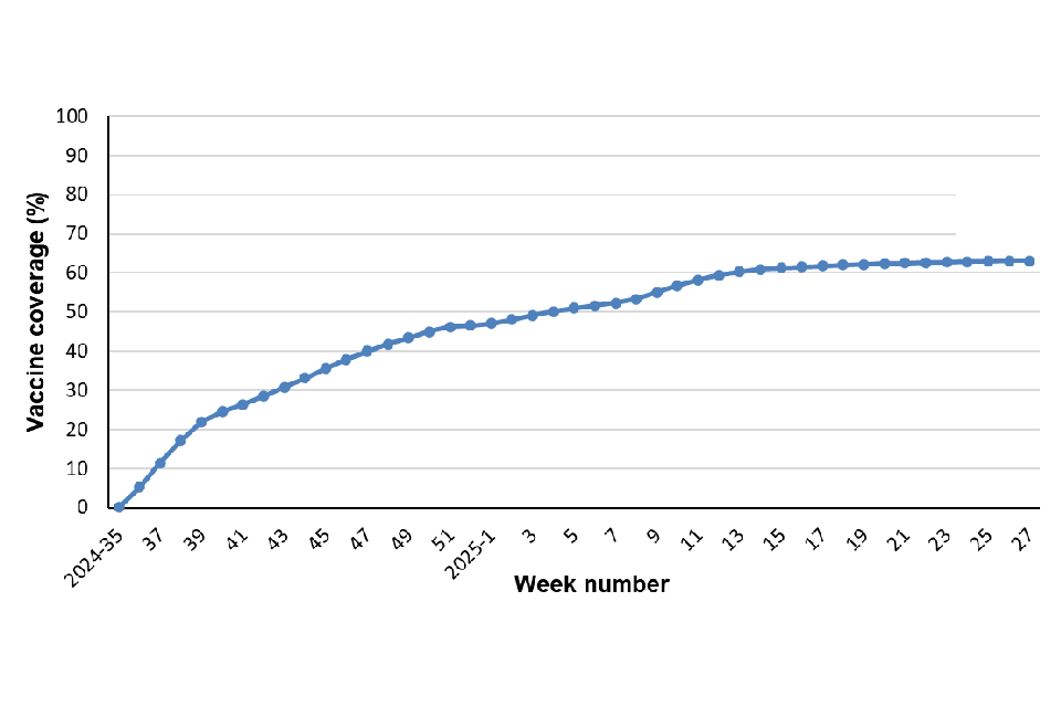 - as of 30 June 2025, the overall vaccine coverage in the catch-up cohort (adults aged 75 to 79 before the programme start date) reached 62.9%, up from the 62.4% reported in the May 2025 report (see Figure 1)(1)