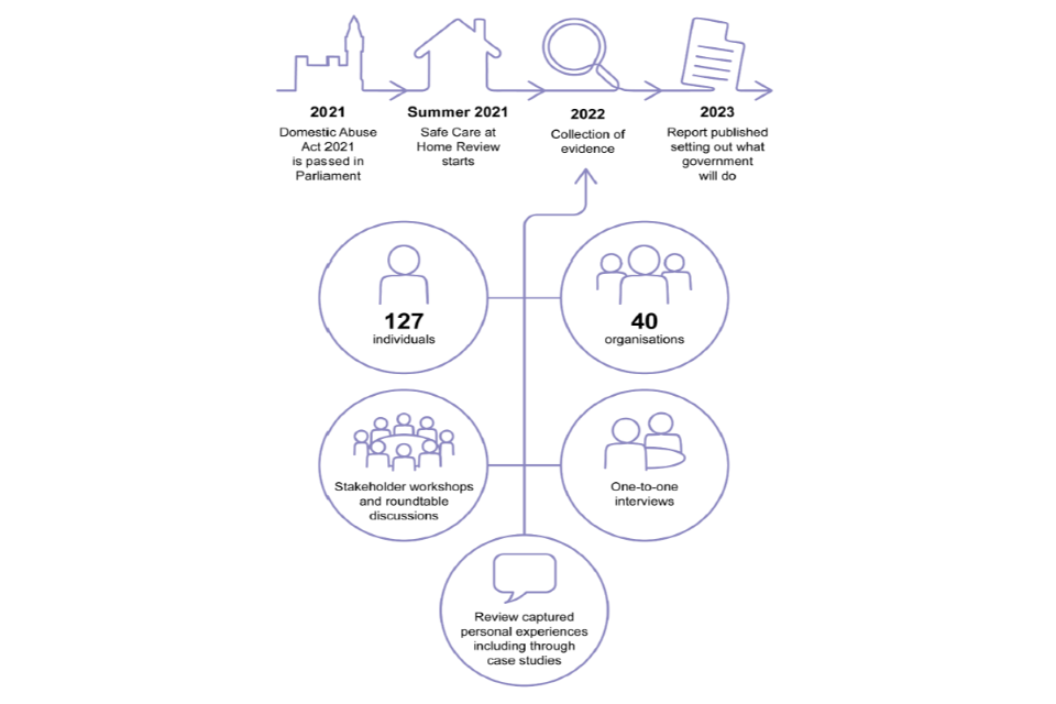 1. During the passage of the Domestic Abuse Act 2021, concerning evidence was presented by peers and the deaf and disability sector on abuse against people receiving care in their own homes. In response, the government decided to review the existing protections and support for adults with care and support needs who are at risk of, or experiencing, abuse in their own homes by people providing their care. The Safe Care at Home Review (‘the review’) was jointly led by the Home Office and Department of Health and Social Care (DHSC). The review applies only to England, as health and social care is a devolved matter.