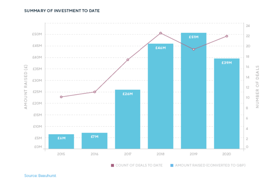Overall, the total external investment raised by the sector in 2020 reached £39m across 22 deals.
