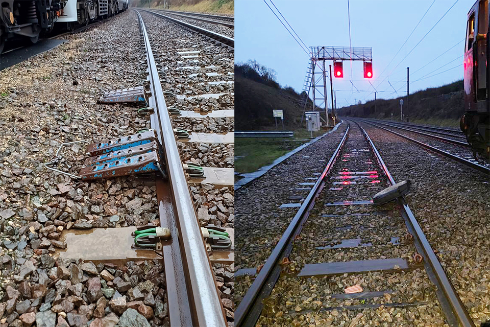 - a collision at Cradlehall on 25 February 2018 (RAIB safety digest 05/2018), where a section of track was left over a running rail and was subsequently hit by the first train of the day