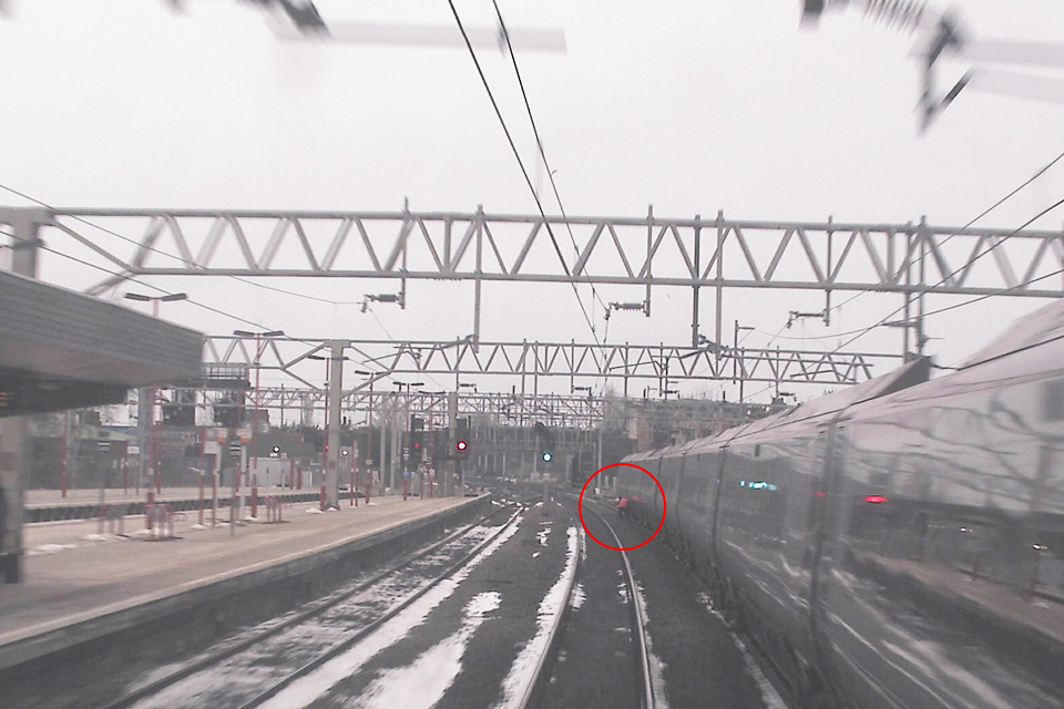 Forward facing CCTV image from the northbound (image courtesy of Virgin Trains). The driver of 1A34 is circled.