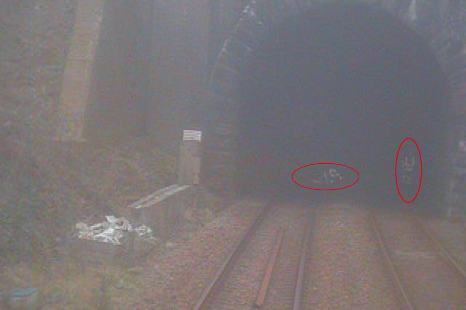 The train involved was 1D12, the 10:25 hrs passenger service from Shrewsbury to Holyhead. It was travelling close to the maximum permissible line speed of 75 mph (120 km/h). The driver sounded the horn on sighting the work group. The group had just entered the tunnel on the down line (the line used by trains heading west) and were using a long pole to remove icicles from the water deflection sheeting on the tunnel roof. The COSS heard the horn, turned and saw the train approaching them. He shouted that they were on the wrong line and managed to get to safety on the other line. The other track worker tried to do the same but fell over. He then managed to roll into the space between the tracks. The driver saw that the track worker was across the right-hand running rail of the down line, and immediately applied the emergency brake and sounded the horn again. CCTV from the train showed that the track worker managed to crawl clear with about a second to spare.