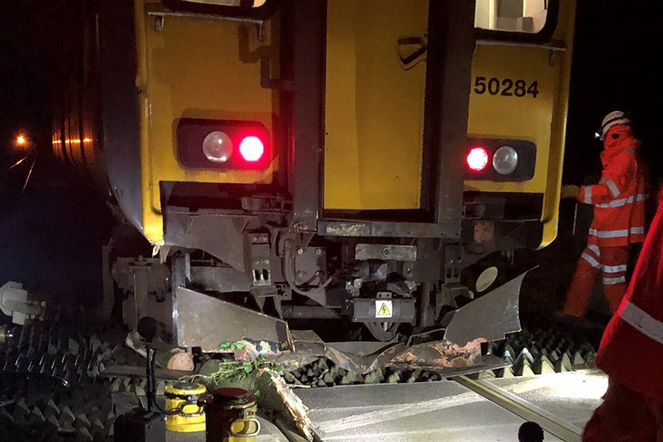 The derailed train following the collision (image courtesy of Network Rail)