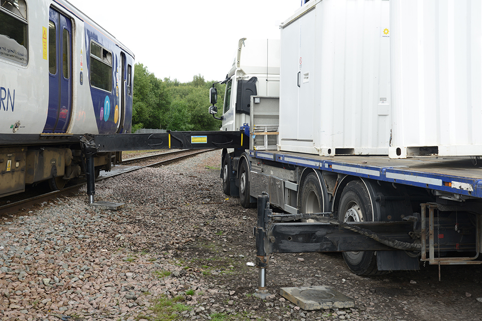 The haulage company’s lorry driver parked near to the access gate for the site at 08:32 hrs on 27 August. He met a member of CRSA staff who had been asked to let the lorry into the site. Once they had confirmed the lorry was in the right place, the driver drove into the site through the open gates and parked it in a position to lift the portable toilet units onto the lorry’s flatbed. He then deployed the stabiliser legs in readiness to use the lorry’s crane. The lorry driver had already loaded the first unit onto the lorry and was just lowering the second one when the train approached and struck the lorry’s front, nearside stabiliser leg.
