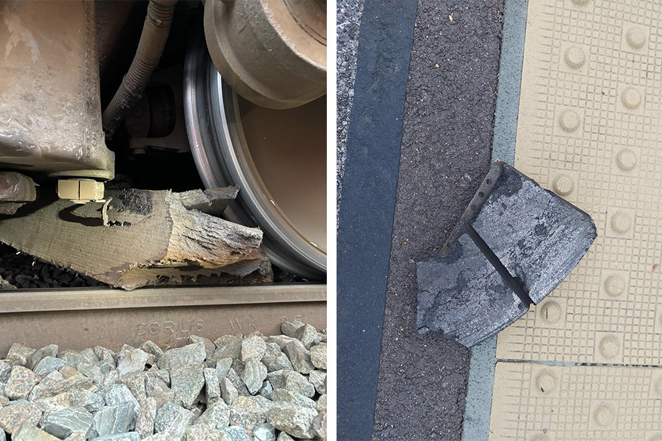 The RRAP piece became trapped under the rear of train 1R00, disturbing ballast and dislodging a brake pad. The drivers first became aware of an issue when the train’s systems indicated a loss of electrical power. Staff further along the train also reported a loud noise which was followed by the deflation of a secondary suspension airbag on the rearmost coach.