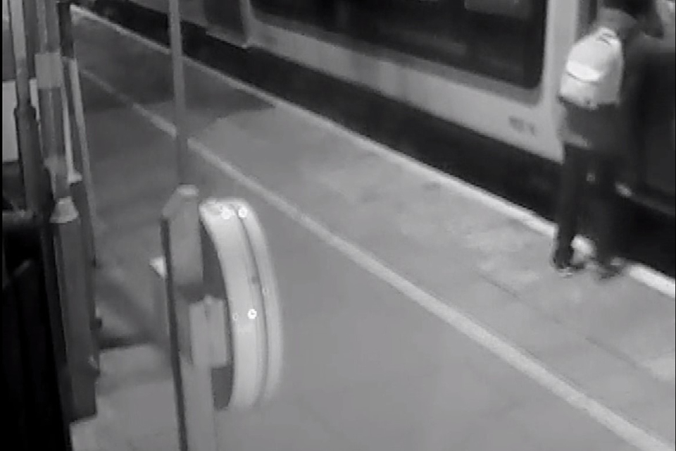 Platform CCTV images of the rear portion of the train showing the passenger in contact with the train (courtesy of West Midlands Trains)