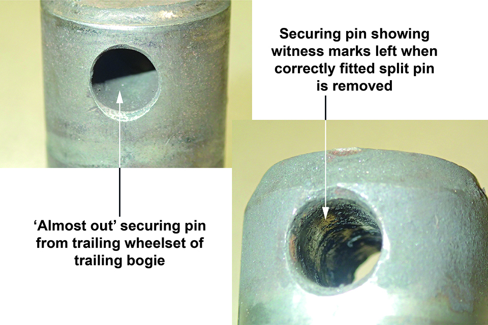 Figure 7: Trailing end bogie showing pin ‘almost out’ on trailing wheelset due to missing split pin at the end furthest from camera