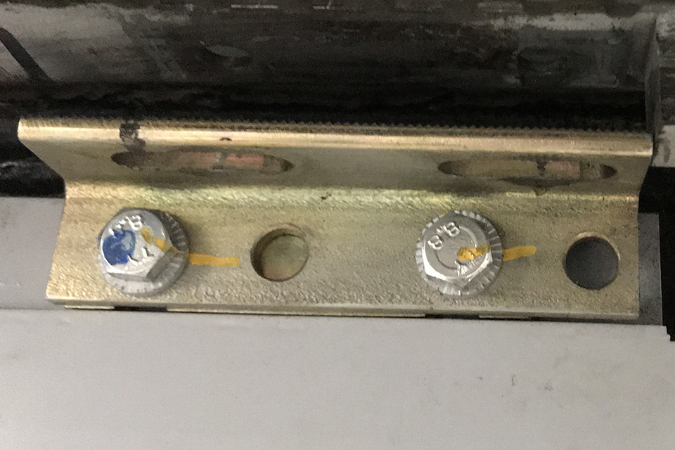Wabtec required its staff to paint a yellow mark across the screw head, washer and bracket when they had tightened each screw to the specified torque. This assists maintenance staff to identify any subsequent loosening of the screw, as rotation results in misalignment of the marks.