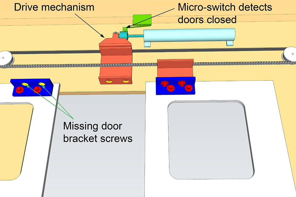 The interlock circuit on class 321 trains monitors the position of the doors using a micro-switch which detects the position of the drive belt piston rod. This rod moved to the door closed position when the driver operated the ‘doors close’ control at Shenfield so the interlock incorrectly indicated that all the train doors were fully closed.