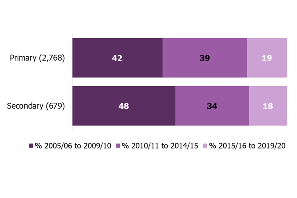 When the exemption ended in 2020, there were 3,400 outstanding schools. We had not inspected 82% for at least 5 years, and not inspected around half of these for at least 10 years (see Figure 2). This also means that these schools had not been inspected under our current or previous inspection frameworks. Many of the schools became academies, and many will have had a change of headteacher in this time.