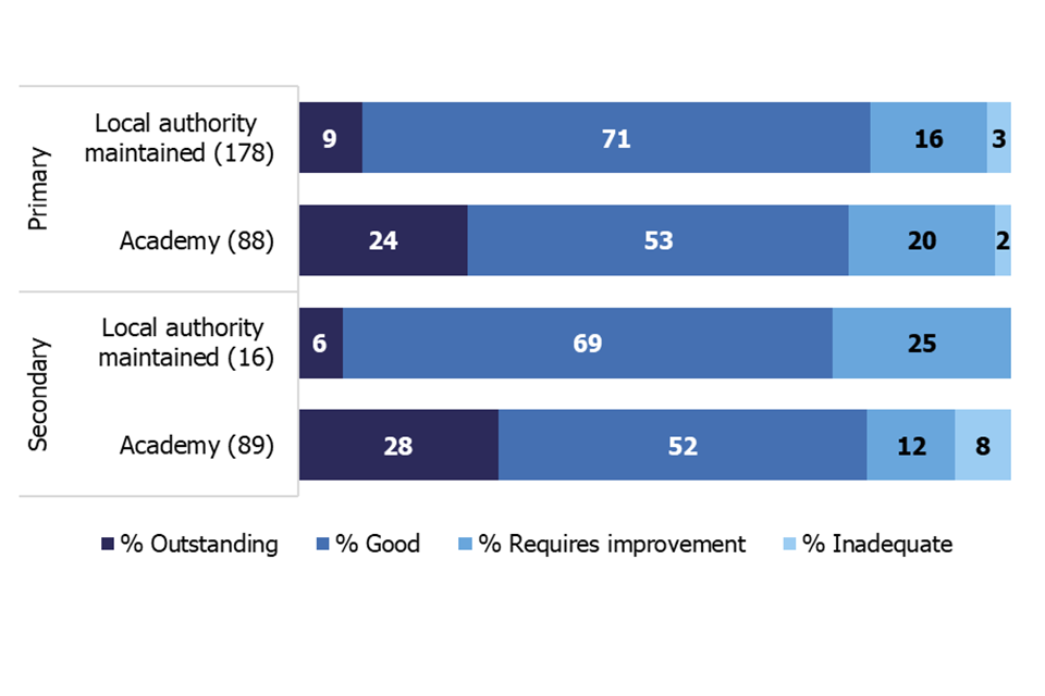 | School type | Number of schools | % Outstanding | % Good | % Requires improvement | % Inadequate |