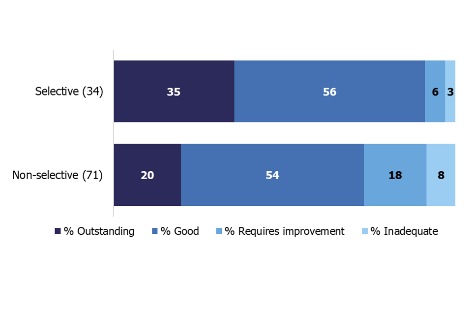 | Selective status | Number of schools | % Outstanding | % Good | % Requires improvement | % Inadequate |
