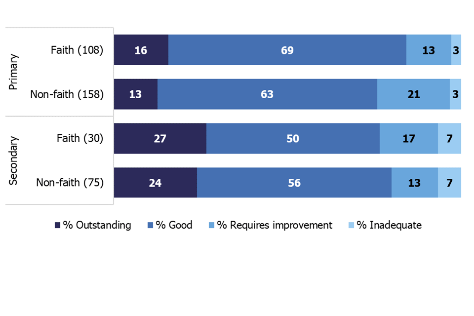 There was a mixed picture for schools of different faiths, but overall faith schools were slightly more likely to remain outstanding than non-faith schools. The vast majority of faith schools inspected were Christian schools.