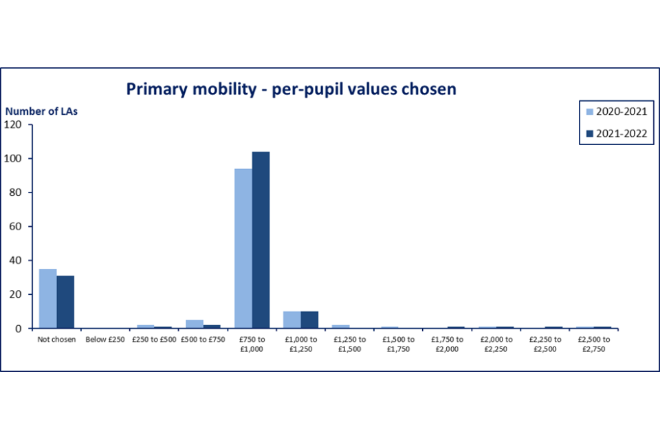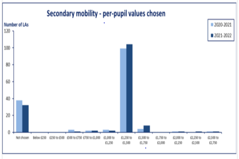 - the per-pupil funding amounts local authorities have chosen for the primary and secondary indicators in their 2021 to 2022 formulae