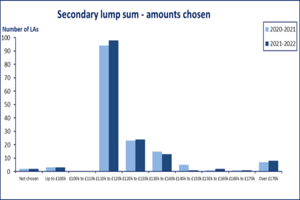 City of London and Haringey are the local authorities represented by the ‘Not chosen’ bar for 2020 to 2021 secondary lump sum amounts. ↩