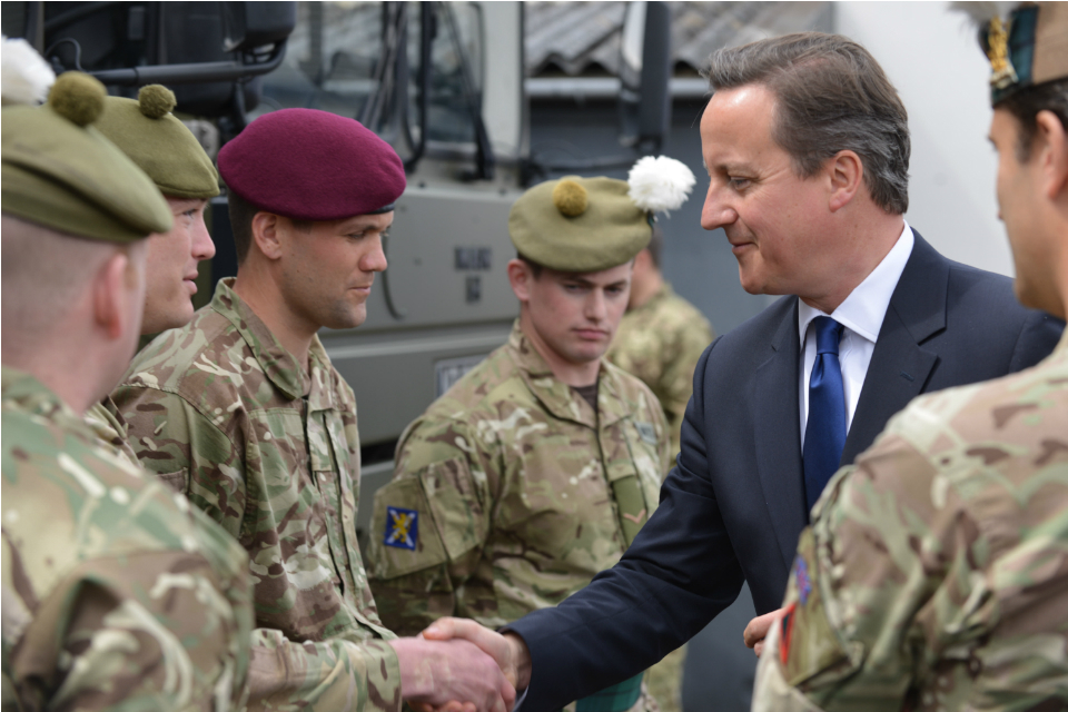 David Cameron met members of the armed forces at the 6 Scots headquarters in Glasgow.