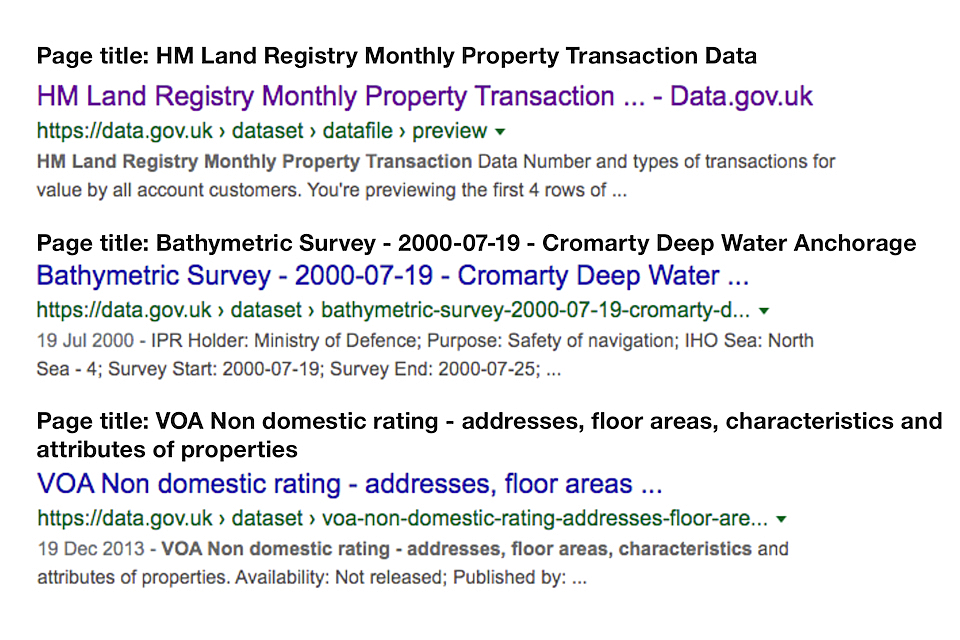This best practice guide provides advice for data publishers wanting to improve the findability of their metadata (and therefore data) through search engines. The recommendations are based on research carried out by the Geo6[footnote 1] on behalf of the Geospatial Commission for the Data Discoverability project. While the project was focused on geospatial data, the principles set out below can be applied to any kind of data and data publisher.