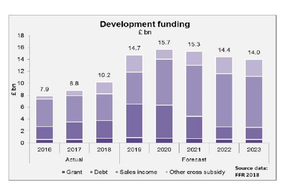 74 - Some of the development will be funded through facilities that are already in place. However, registered providers have also forecast an increase in net debt of £19 billion to help fund their development programmes. Once repayments of existing debt are factored in, the sector will need to draw £31 billion to finance this spending.