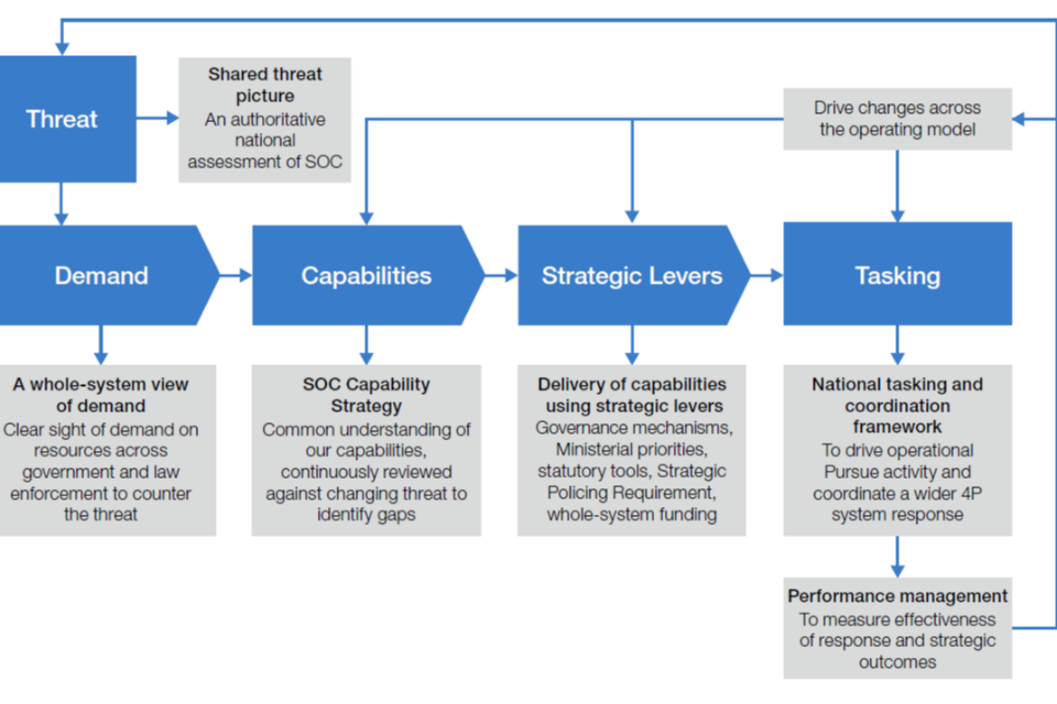 - 4. Establishing a single, whole-system approach At the local, regional, national and international levels, we will align our collective efforts to respond as a single system. We will improve governance, tasking and coordination to ensure our response brings all our levers and tools to bear effectively against the highest harm criminals and networks. We will expand our global reach and influence, increasing our overseas network of experts to ensure the UK’s political, security, law enforcement, diplomatic, development, defence relationships and financial levers are used in a more coordinated and intensive manner. And we will work to integrate with the private sector, pooling our skills, expertise and collective resources, co-designing new joint capabilities, and designing out vulnerabilities together.