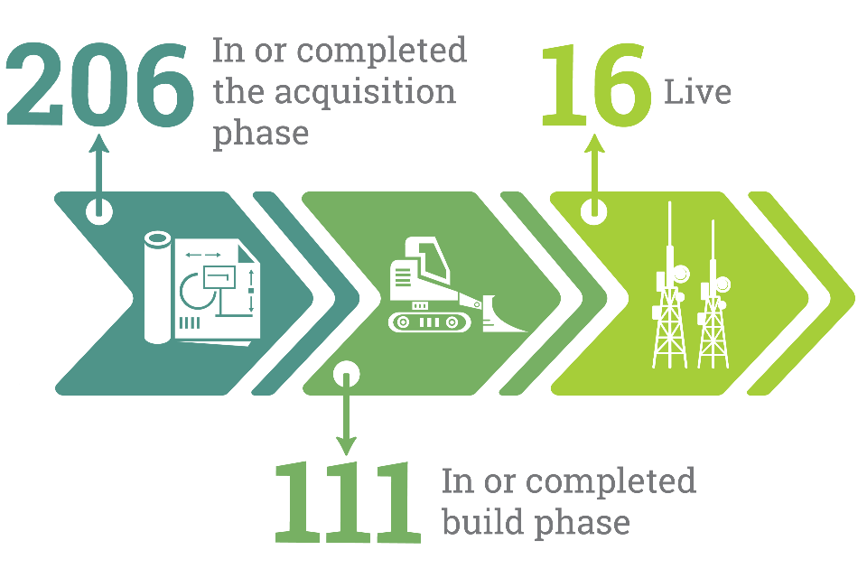 206 masts are either in, or have completed, the design and acquisition phase of the project, during which BDUK assesses each mast for value for money and the coverage it will provide.
