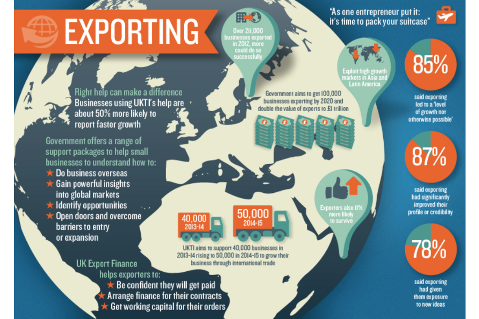 - You can get help to identify and exploit export opportunities from UK Trade and Investment (UKTI). UKTI offers online resources, a network of trade advisors around the world and in-depth support for growing firms, and it aims to support 50,000 businesses per year.