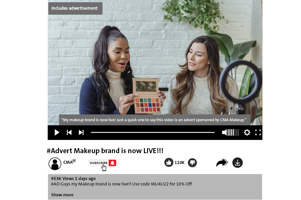 The above image is an example of a video endorsement, which in the CMA’s view, would likely comply with the requirements of consumer protection law.