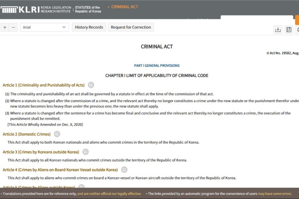Your friends or family can search Korean laws/statutes using this KLRI link: https://elaw.klri.re.kr/eng_service/main.do