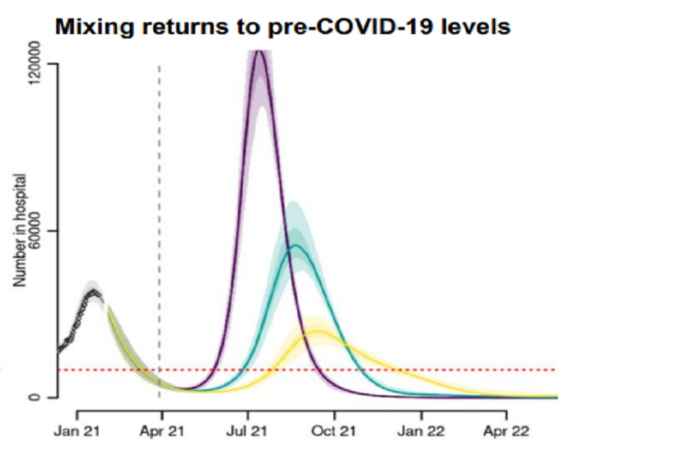 3. Although our understanding of the effectiveness of vaccines is rapidly improving, there are still many uncertainties that will determine the pace at which government can safely relax restrictions. Furthermore, it is impossible to precisely predict how specific policies will change transmission. For that reason, it is much less likely that hospital admissions will reach unsustainable levels if measures are relaxed based on data and the situation at the time, rather than at pre-determined dates. The table in the Appendix summarises the assumptions used in these models.