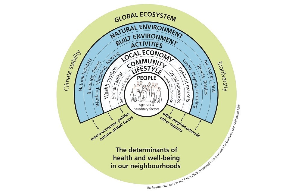 - There are opportunities to improve health through the choices government, regulators, businesses and individuals make in creating and contributing to healthier, greener and more accessible environments.