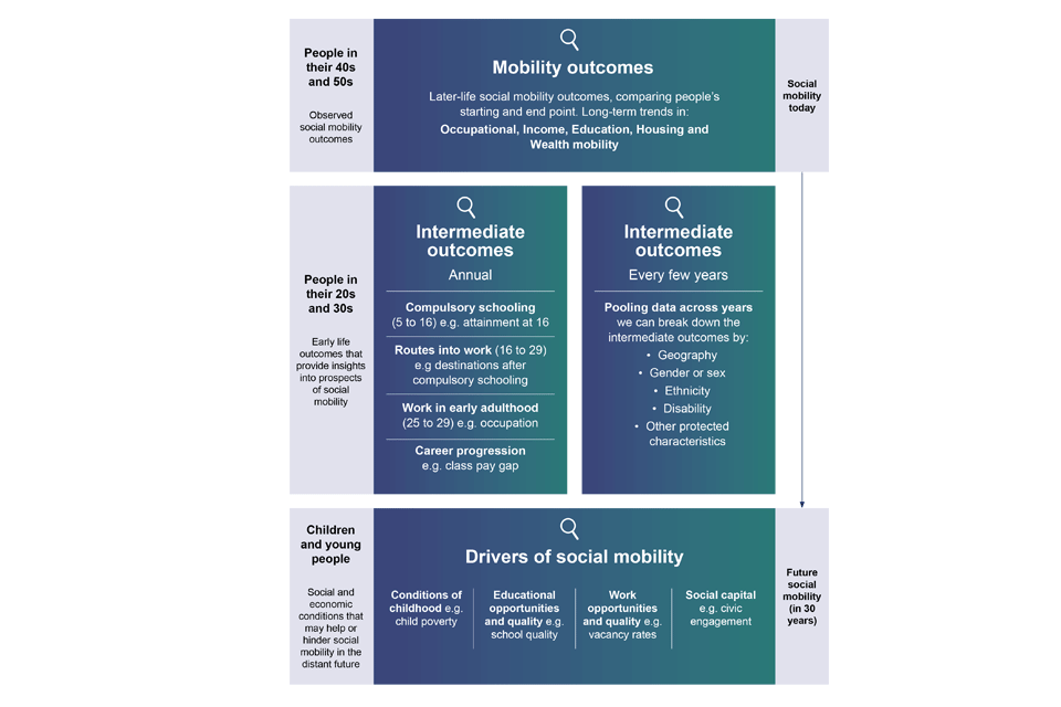 But even using a small number of measures to monitor social mobility can be difficult. The new Social Mobility Index, first published in 2022, provides a framework for measuring mobility clearly and systematically across a person’s lifetime.