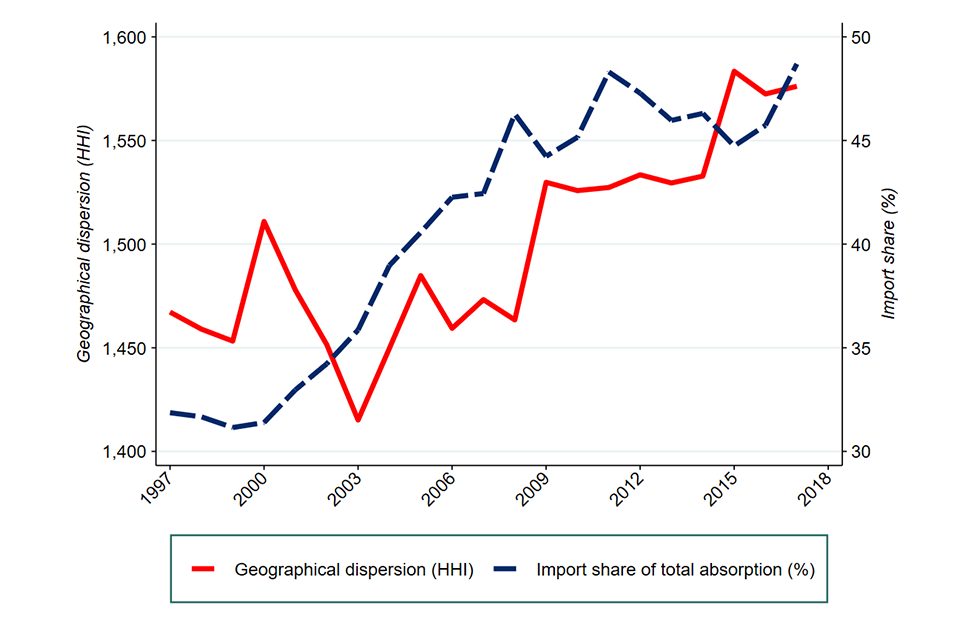 The pandemic has also brought the reliance of the UK economy on international supply chains into focus. We discuss the effects international trade can have on competition as importers can provide competition to domestic producers,. This is discussed in further detail in adjusted concentration.