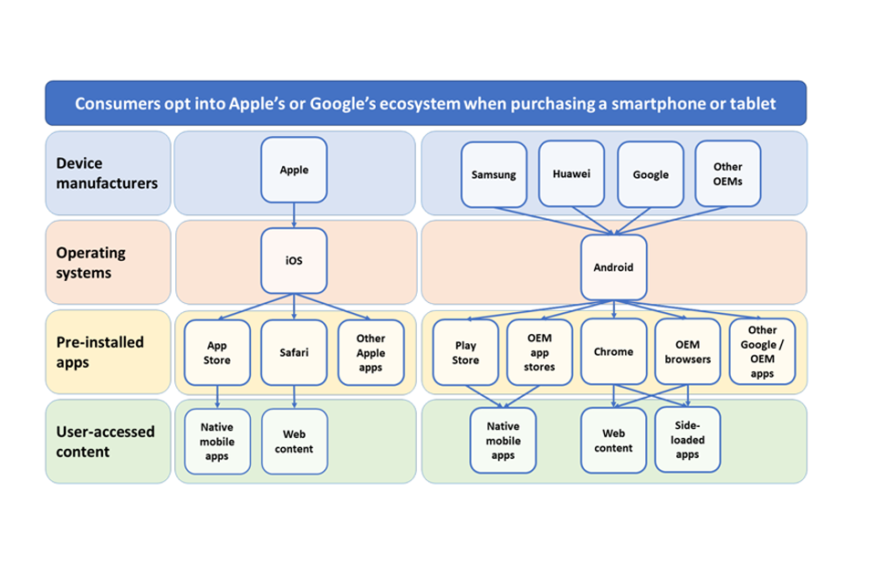 Analysis regarding mobile ecosystems have been taken from the CMAs interim report. Apple and Google argue that our views in this interim report are incomplete. We are considering their views as part of the analysis that will be published in our final report. ↩