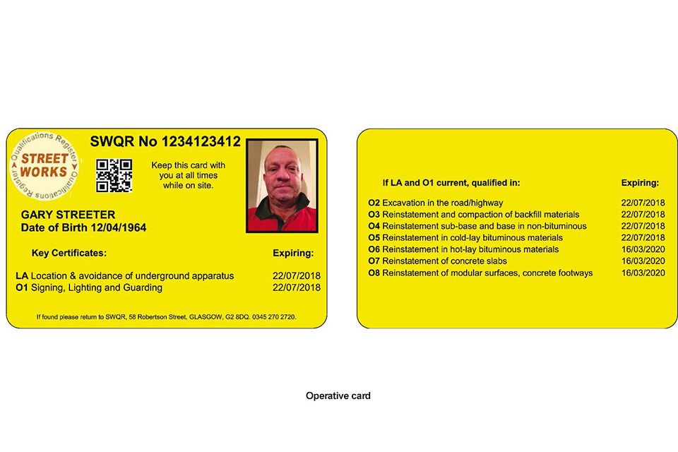 - on 6 April 2017, new regulations came into force in England, The Street Works (Qualifications of Operatives and Supervisors) (England) Regulations 2016