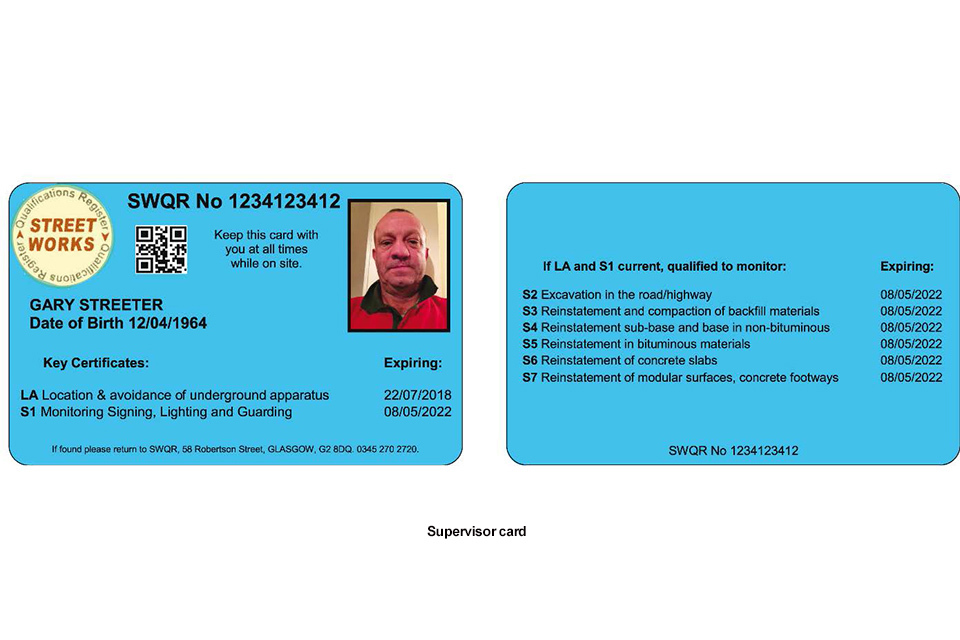 6.2 New style cards will be as shown in Figure 1 (although in practice, there may be some minor differences). The examples shown are for someone who holds all the possible operative and/or supervisor qualifications, as appropriate.