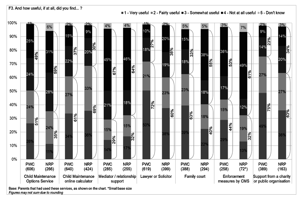Ipsos MORI and DWP undertook a survey of 2,489 non-matched separated parents, to explore how they made provisions for childcare and support. The sample comprised 1,555 parents with care (PWCs) and 934 non-resident parents (NRPs). Parents were non-matched, meaning they were not once a part of the same couple. The survey findings have been weighted to be representative of the full population of separated parents, by age, gender and parent type (PWC or NRP).