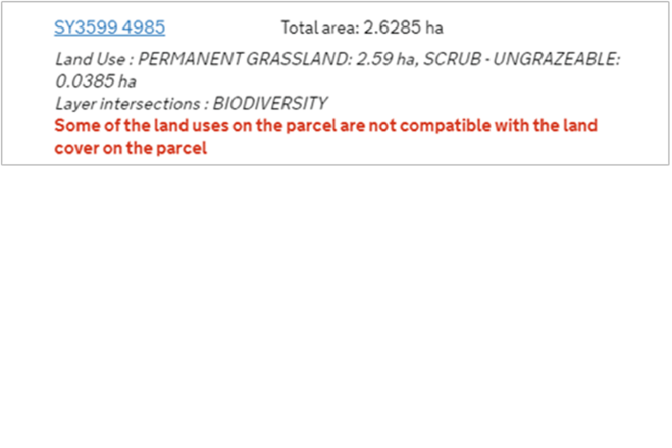You cannot add SFI actions to that land parcel until you update the land uses. Read ‘Annex A: How to fix ‘land use’ error messages’ for further information.