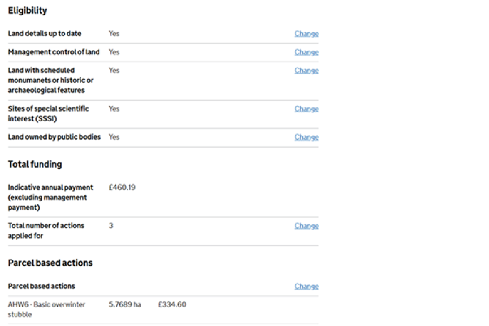 Click on the relevant Parcel ID to apply for SFI actions. If you still see a land use error message this may be because it’s not been possible match: