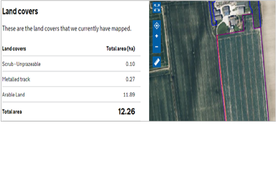 For each land parcel you’ve identified, view it on your digital maps and make a note of the registered land covers and their areas. This will allow you to declare land use codes and areas which match these registered land covers.