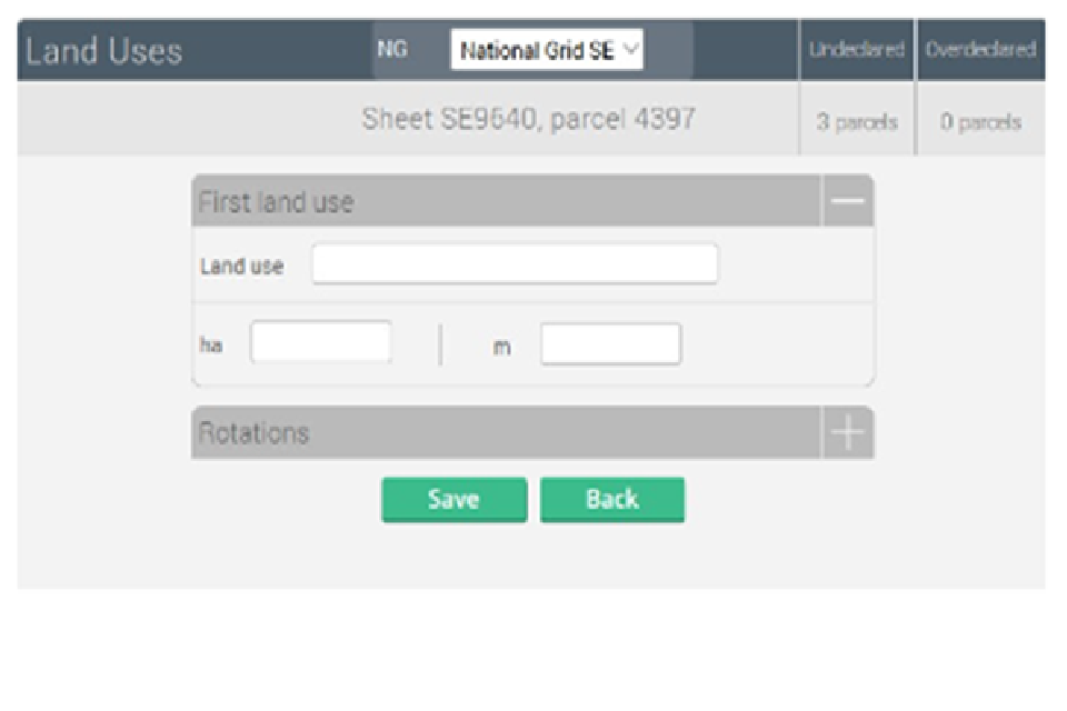 | ‘There have been no land uses declared on this land parcel for this year’ | No land uses have been declared for the land parcel | Add land use codes and areas |
