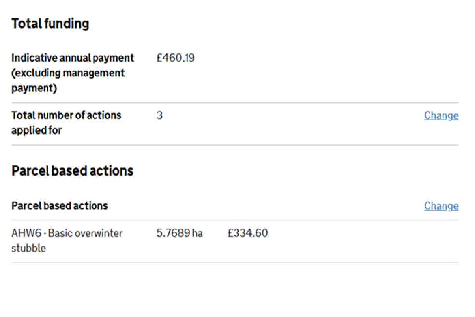 You need to do this in section 4 of your SFI 2024 application (‘Review and submit your application’). Click on ‘Check your answers’. This will show you the ‘Check your answers before submitting your application’ screen. Under ‘Total funding’, you can see the ‘indicative annual payment (excluding management payment)’. Check that this figure is no more than £9,300 per year.