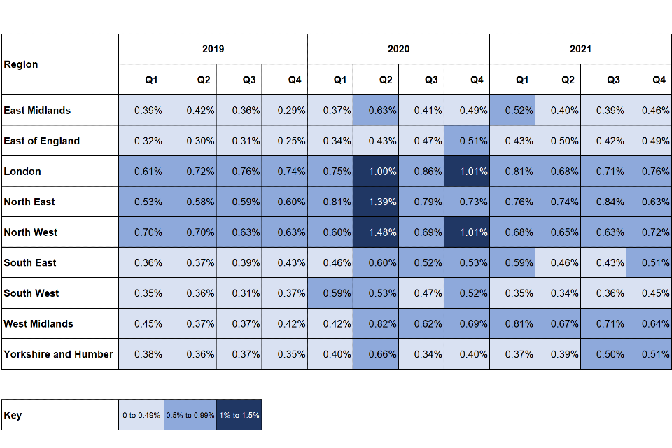 | East Midlands | 0.39% | 0.42% | 0.36% | 0.29% | 0.37% | 0.63% | 0.41% | 0.49% | 0.52% | 0.40% | 0.39% | 0.46% |