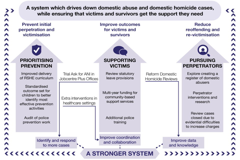 In the past, the onus has too often been placed on the victim and survivor to take action. This plan sets a new course. It vigorously targets those who perpetrate domestic abuse to prevent first-time, repeat, and serial offending. It will set out the building blocks for an enhanced system that will aim to prevent domestic abuse from happening in the first place, deliver better outcomes for victims and survivors, as well as one that is unrelenting in the pursuit of perpetrators and unequivocal in insisting it is they who need to change their behaviour.
