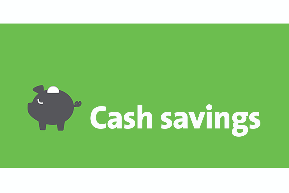 A title image that reads 'cash savings' with a picture of money in a piggy bank.